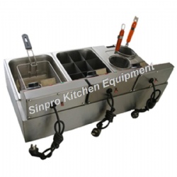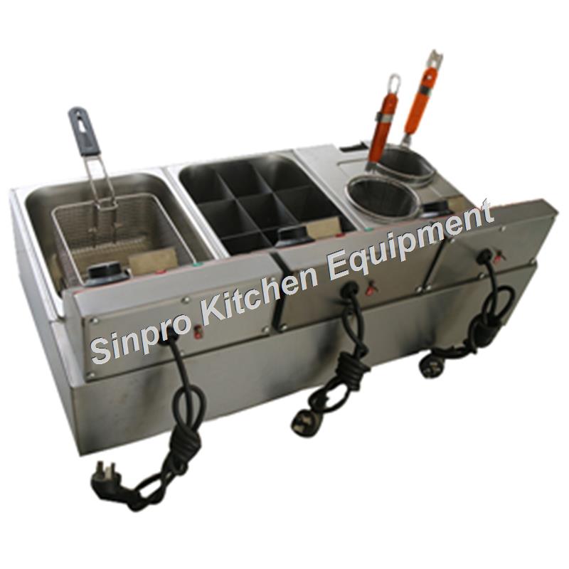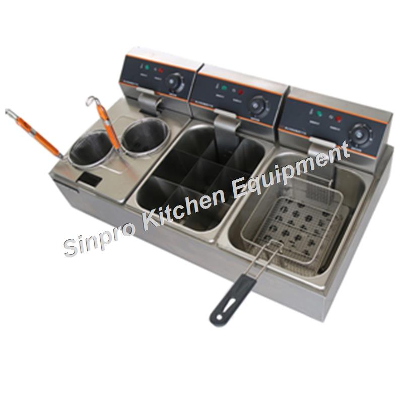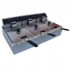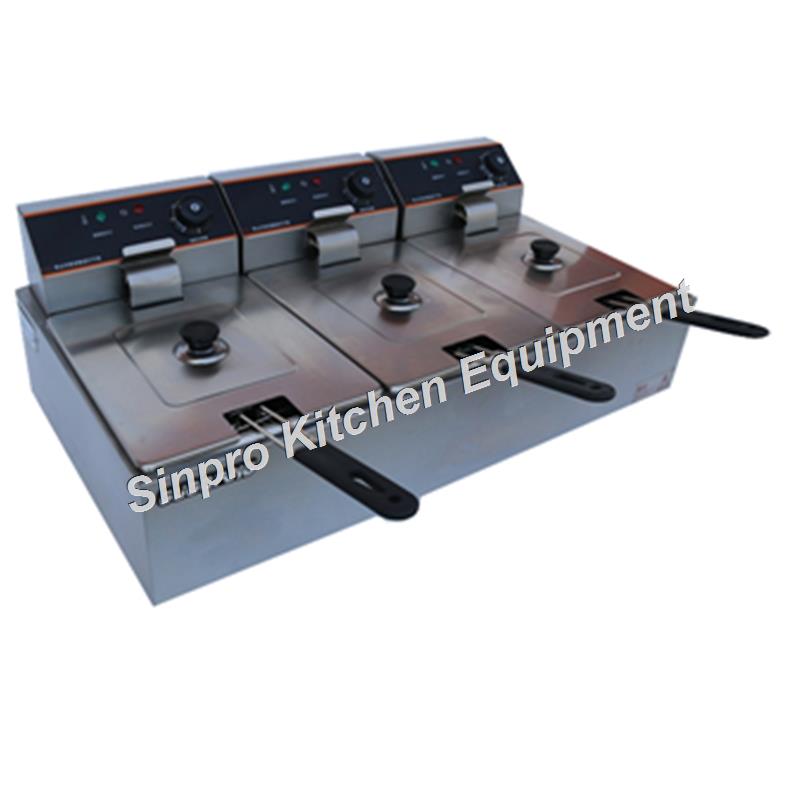 Freidora comercial de acero inoxidable de tres cilindros con encimera / freidora eléctrica